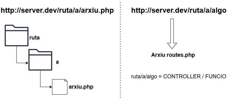 L’arxiu de rutes és l’encarregat de dirigir el trànsit que arriba al servidor des de l’equip client, la seva funció bàsica és l’execució de la funció corresponent en funció de la ruta indicada per URL. En PHP tradicional l'URL té una traducció directa al sistema de fitxers.